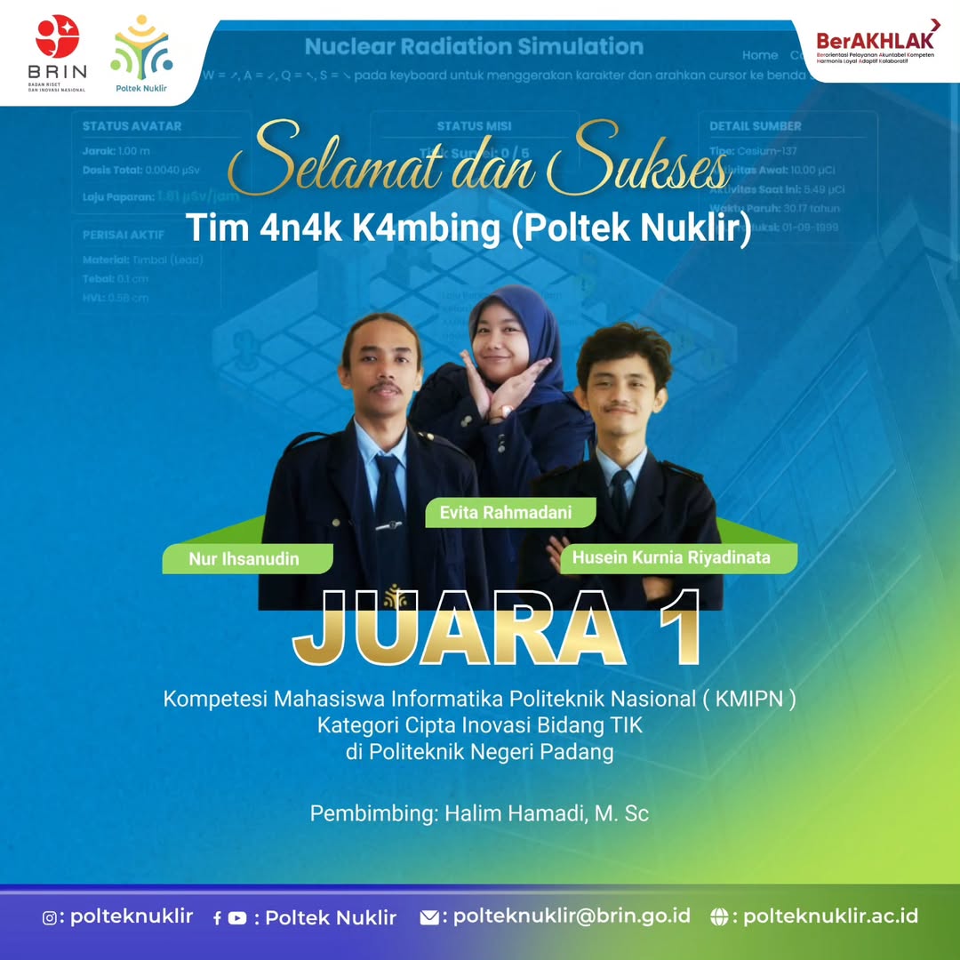 “Perjalanan kuliah di Poltek Nuklir sungguh mengubah hidup saya. Di Potek Nuklir ini, saya ditempa menjadi individu yang kompeten dan siap menghadapi dunia kerja. Berkat dukungan d…”