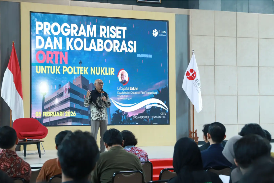 Yogyakarta – Humas BRIN. Pusat Riset Fisika Kuantum bersama Politeknik Teknologi Nuklir Indonesia (Poltek Nuklir) BRIN memperkenalkan peluang riset fisika partikel tingkat internasional kepada mahasiswa di Yogyakarta pada Senin, (23/2). Kegiatan ini menghadirkan Peneliti Ahli Madya Pusat Riset Fisika Kuantum BRIN Zulkaida Akbar. Ia memaparkan kiprah riset BRIN dalam eksperimen A Large Ion Collider Experiment (ALICE) di CERN, yakni pusat penelitian fisika partikel terbesar di dunia sekaligus membuka wawasan mahasiswa mengenai penguasaan sains dasar, teknologi instrumentasi, dan komputasi modern menjadi fondasi penting dalam menyiapkan generasi peneliti masa depan yang mampu berkontribusi di tingkat global.