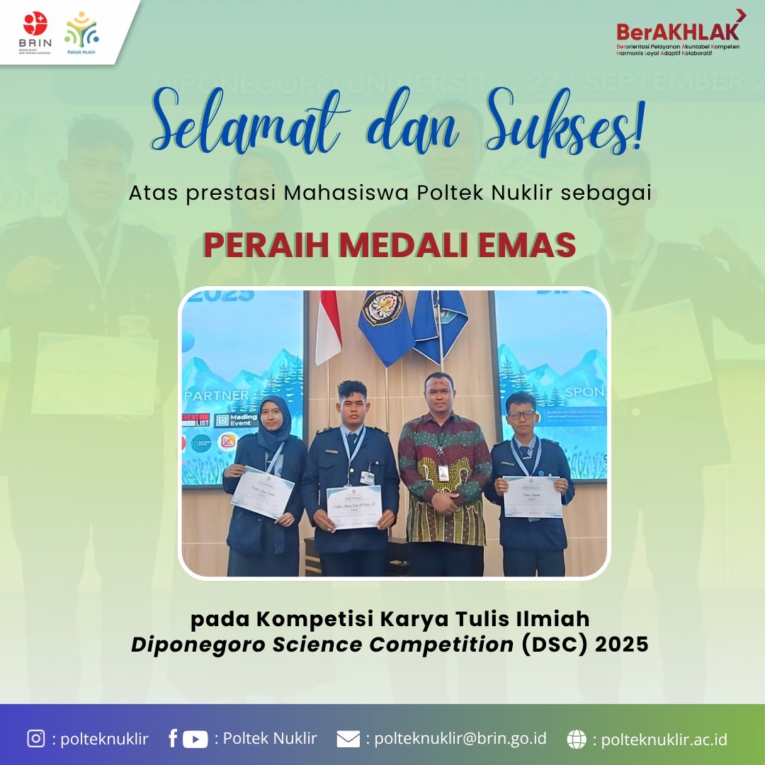 Selengkapnya“Perjalanan kuliah di Poltek Nuklir sungguh mengubah hidup saya. Di Potek Nuklir ini, saya ditempa menjadi individu yang kompeten dan siap menghadapi dunia kerja. Berkat dukungan d…”